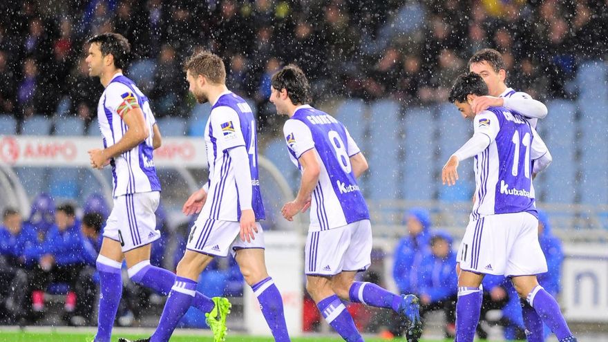 Juanmi abrió el marcador para la Real Sociedad con un remate de cabeza tras un centro desde la derecha (14), pero el argentino Gonzalo Escalante equilibró también de cabeza al saque de un córner en el 25, antes de que el mexicano Carlos Vela rubricara el 2-1 (68) de penal.