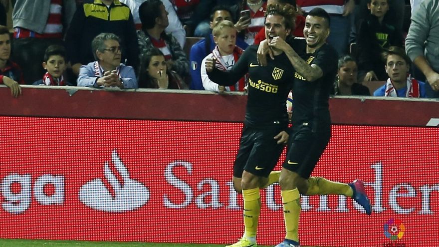 Un gol de cabeza del francés Antoine Griezmann en el minuto 86 permitió al Atlético de Madrid vencer esta noche por 0-1 al Granada en el Estadio Nuevo Los Cármenes, un triunfo que le sirve para asegurar la cuarta plaza al final de esta jornada.