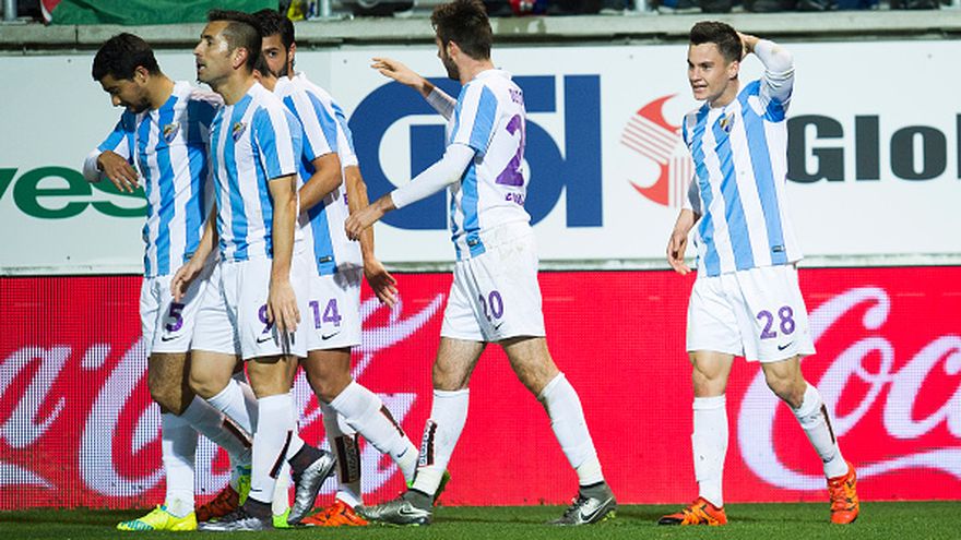Málaga CF: Ochoa; Rosales, Weligton, Albentosa, Torres (Ricca, m. 46); Juanpi (Atsu, m. 67), Camacho, Recio, 'Chory' Castro; Cop (Fornals, m. 81) y Charles.
