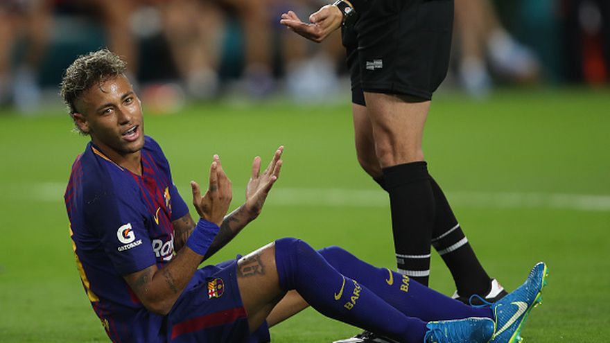 Neymar posó sonriente junto al trofeo de la International Champions Cup, una imagen que borra la que dejó en la víspera, cuando abandonó un campo de entrenamiento furioso tras un altercado con el portugués Nelson Semedo, recién aterrizado en el Barcelona.