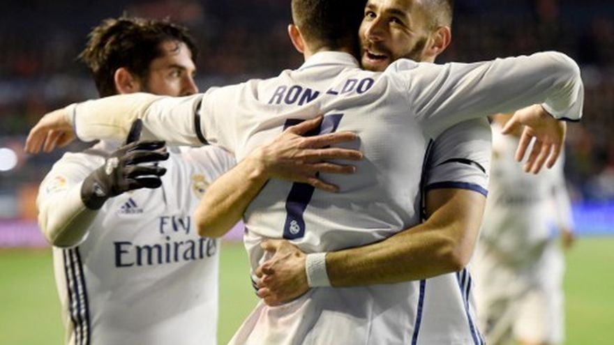En el partido de Pamplona, el Real Madrid abrió el marcador en el minuto 24 por medio de Cristiano Ronaldo, con un disparo cruzado a pase de Karim Benzema.