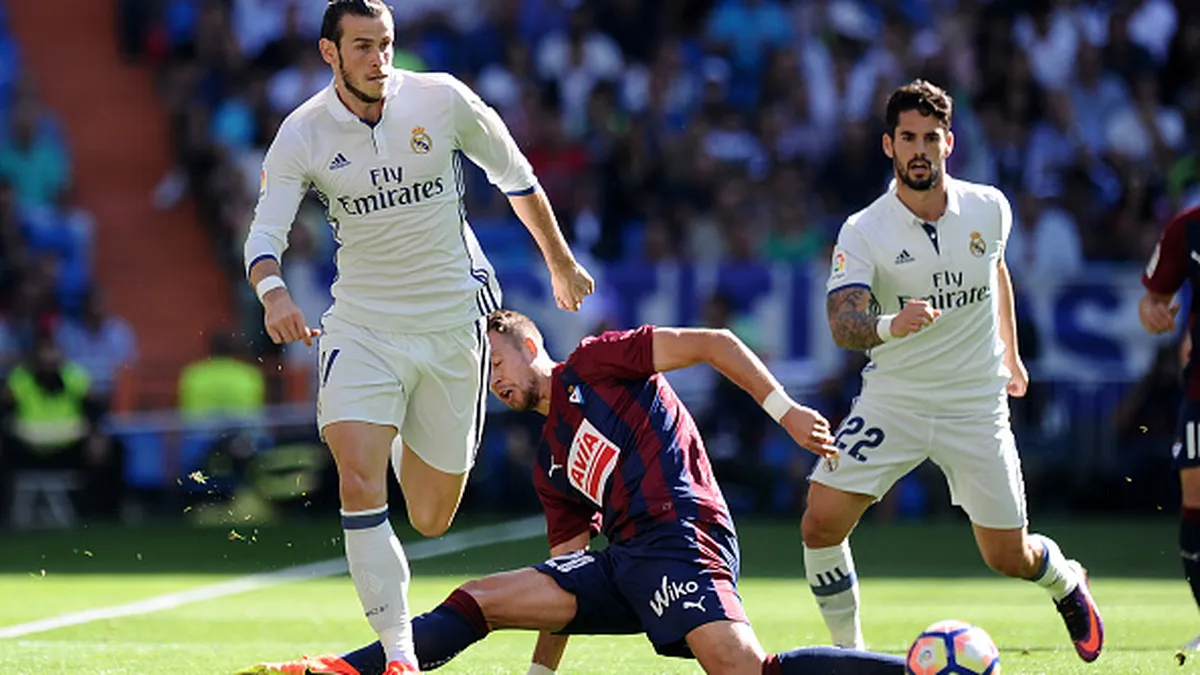 Fran Rico adelantó pronto al Eibar con un tanto de cabeza a bocajarro (6), pero diez minutos más tarde, Gareth Bale empataba al rematar de cabeza un centro de Cristiano Ronaldo desde la izquierda (17).