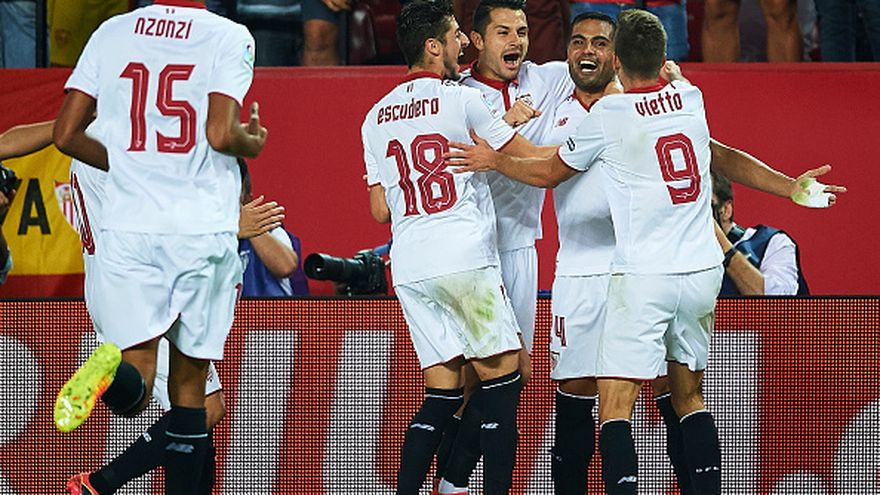 El Sevilla tocó y controló la pelota, buscando entrar principalmente por la derecha con Víctor Machín "Vitolo" y las acciones de Franco "el Mudo" Vázquez, pero el muro bético impedía una buena circulación del balón.