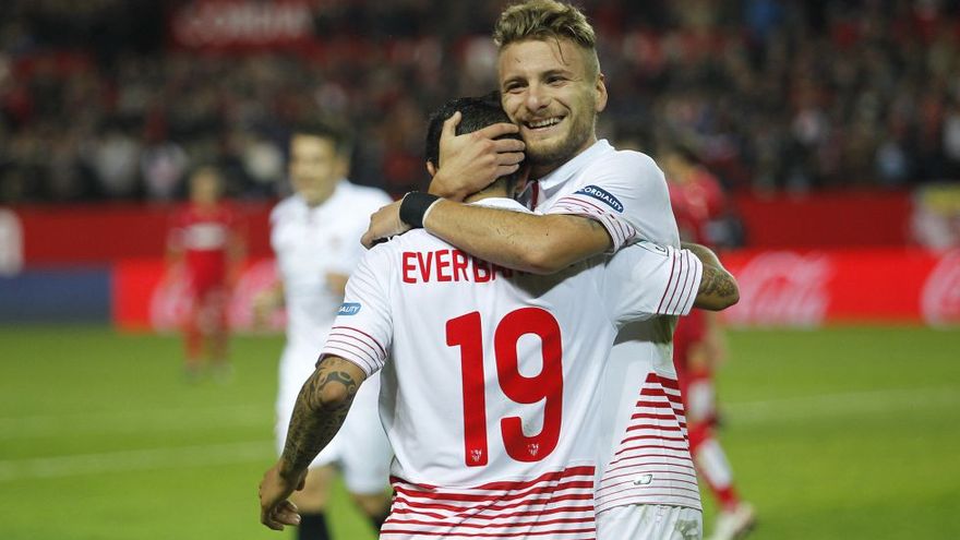 Los sevillistas siguieron controlando el choque sin problemas, con orden y con llegadas fáciles arriba al entrar más en juego el argentino Éver Banega, quien hizo el 2-0 en una acción personal, cuatro minutos antes del descanso, y luego puso un centro a Immobile para que hiciera el tercero, pero, a puerta vacía, cabeceó fuera.