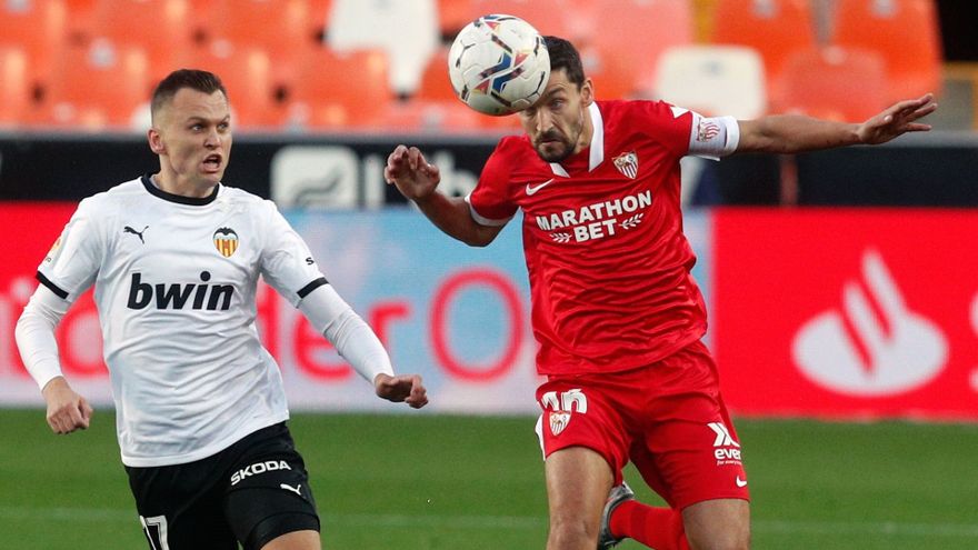 Antes, el ruso Denis Cheryshev había tenido buenas oportunidades para el Valencia, pero el arquero marroquí de los andaluces, Yassine Bounou 'Bono' (45+3, 53) las desbarató.