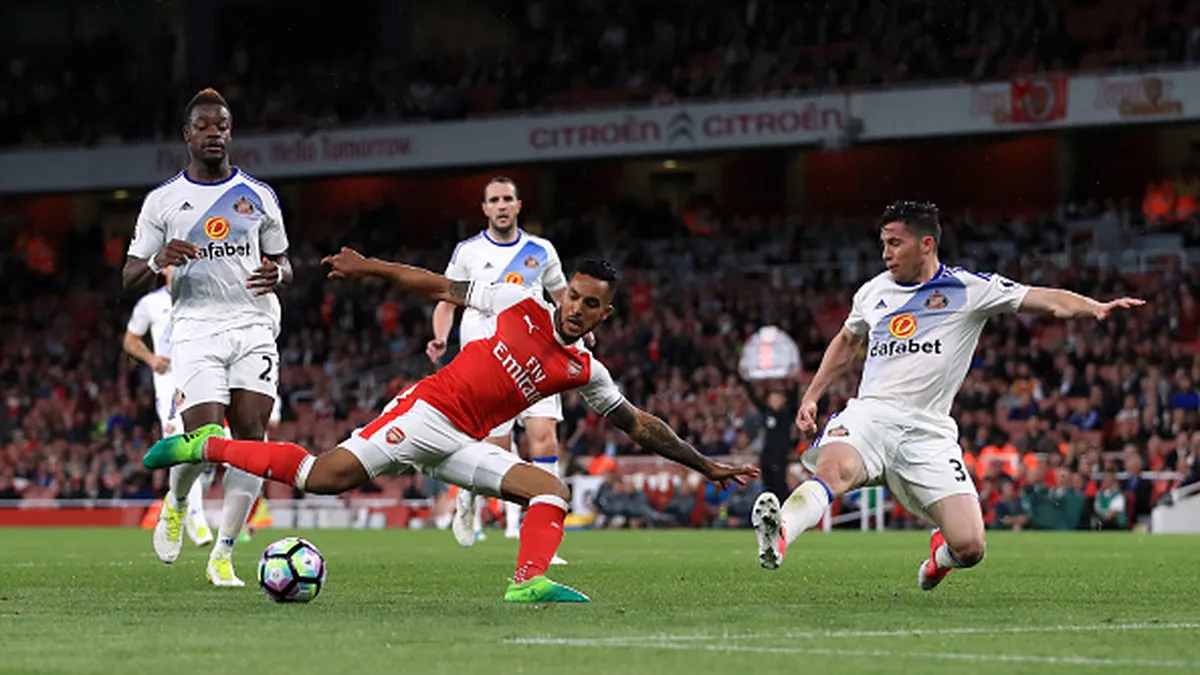 Theo Walcott (c) hace un remate a portería ante el Sunderland / Getty Images