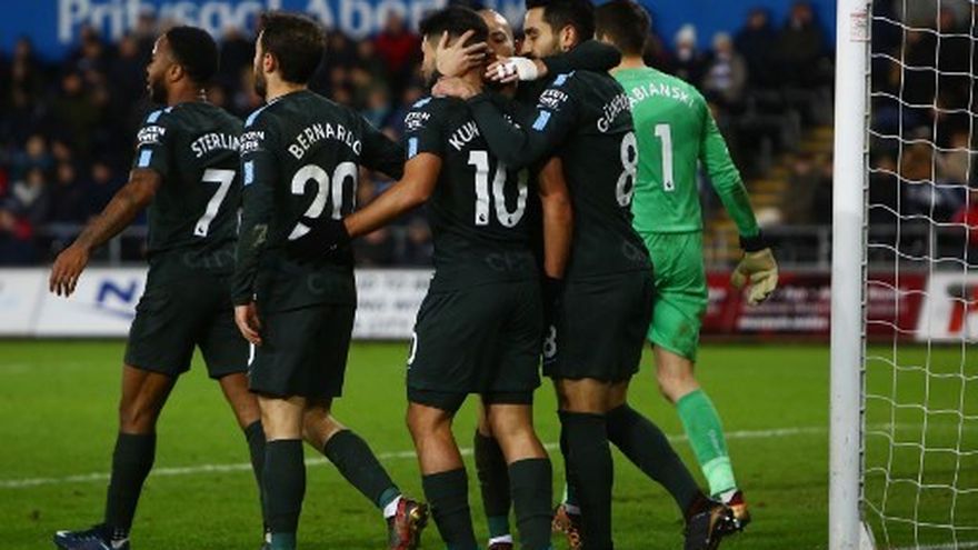El Mánchester City se acerca al título de la Premier League tras batir el récord de victorias consecutivas en el campeonato inglés (15), después de golear al colista Swansea por 4-0, este miércoles en la 17ª fecha del torneo.