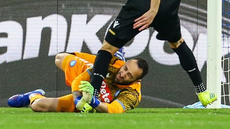 El arquero internacional colombiano del Nápoles David Ospina fue trasladado al hospital tras desplomarse en el césped este domingo, unos minutos después de haber recibido un golpe en la cabeza tras un duelo con un jugador del Udinese.