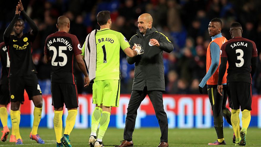 El entrenador Josep Guardiola afirmó este viernes que cree que el arquero Claudio Bravo está contento en el Mánchester City, saliendo al paso de los rumores sobre una vuelta del jugador a España.