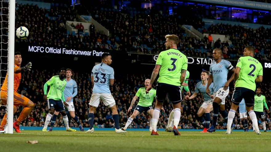 El tanto del 2 a 0 definitivo llegó al borde del descanso, cuando el alemán Leroy Sané recibió casi en la frontal del área y envió un disparo entre una nube de rivales que terminó alojado en las redes del Cardiff.
