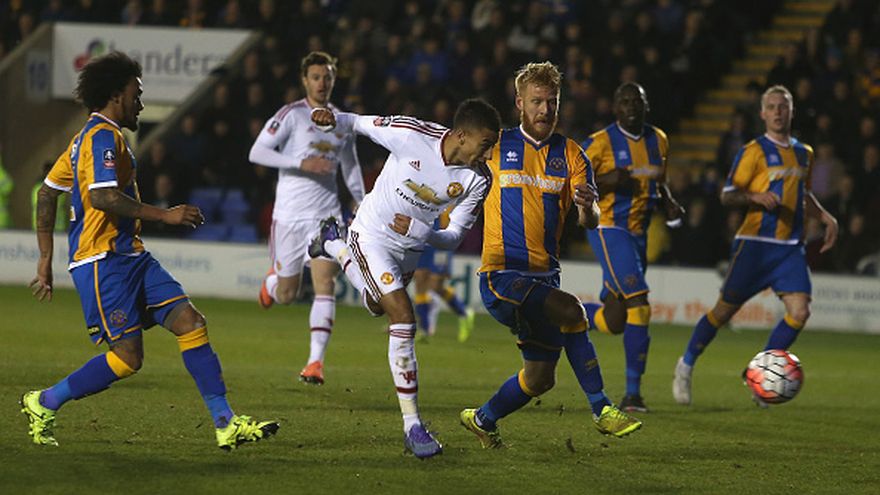 El Manchester United certificó la clasificación para los cuartos de final de la Copa de Inglaterra, en los que se medirá con el West Ham, tras imponerse este lunes por 0-3 al modesto Shrewsbury Town, conjunto de la tercera categoría del fútbol inglés.