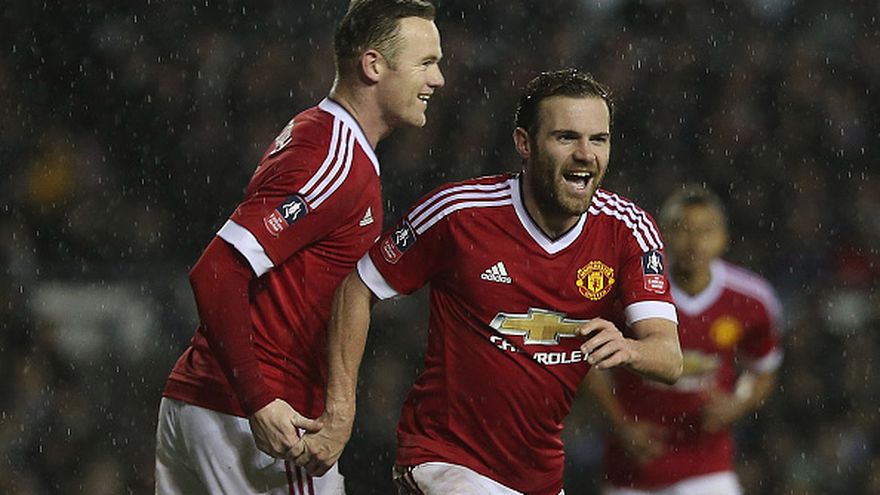 Los goles de Wayne Rooney (16), del holandés Daley Blind (65) y del español Juan Mata (83), le dieron la victoria ante un Derby, que llegó a empatar por medio de George Thorne en el 37.