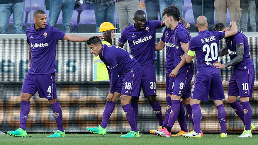 Jugadores de Fiorentina celebran durante el partido ante Lazio / Getty Images