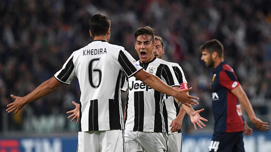 Paulo Dybala (de frente) celebra el gol anotado al Génova con Sami Khedira (6) / Getty Images