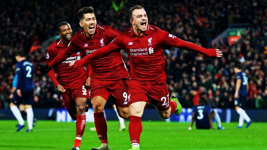 Mourinho planteó una muralla para frenar al Liverpool, De Gea la sostuvo y Xherdan Shaqiri la tiró abajo, cuando decantó el Clásico de Inglaterra (3-1) con un doblete que mantiene al Liverpool líder y deja al Manchester United a 19 puntos del liderato de la Premier League.