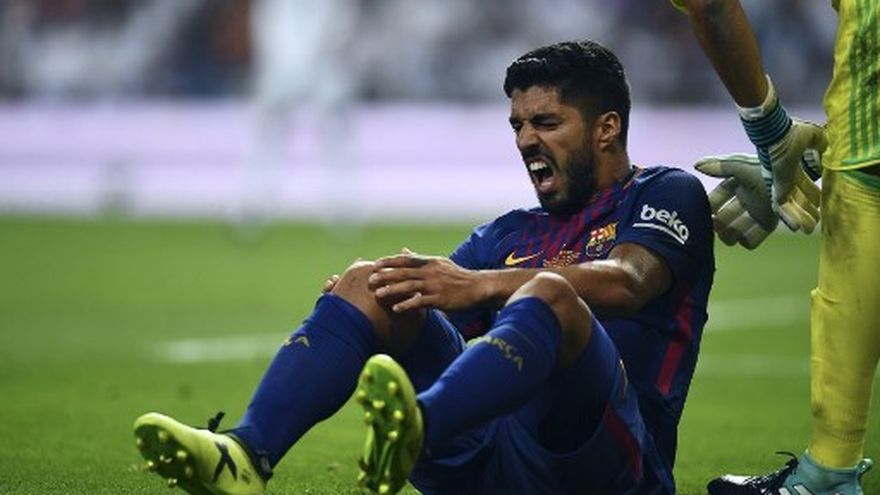 El delantero uruguayo Luis Suárez estará hasta un mes de baja tras sufrir el miércoles en el partido de Supercopa de España una distensión en la rodilla derecha, con lo que se perderá los próximos partidos clasificatorios para Rusia-2018 de su selección.