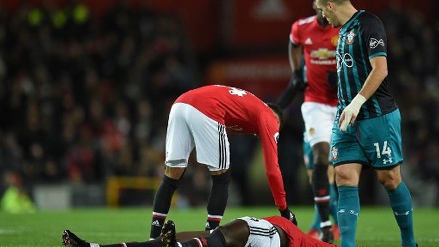 El delantero belga del Mánchester United Romelu Lukaku tuvo que ser evacuado en camilla de Old Trafford tras un choque con el jugador del Southampton Wesley Hoedt, este sábado en la 21ª jornada de la Premier League.