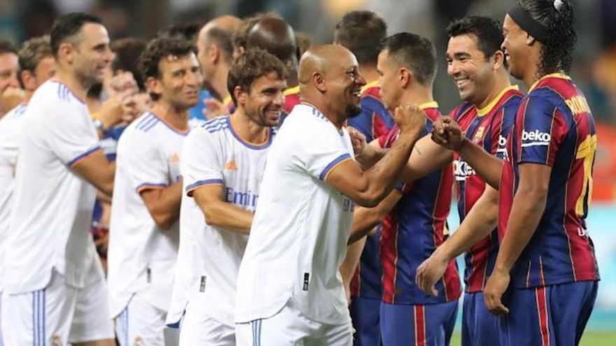 Los equipos "Leyendas" del Barça y el Real Madrid, con astros como Ronaldinho, Rivaldo o Figo y Roberto Carlos, jugaron este martes un disputado 'clásico' de exhibición que los merengues ganaron por un ajustado 2-3, deleitando al público que casi llenó el estadio Bloomfield de Tel Aviv.
