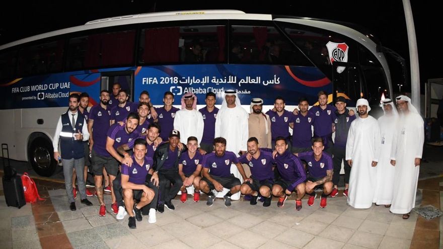 "¡Llegó el campeón! El Millonario ya aterrizó en Emiratos Árabes", escribió el equipo argentino en su Twitter oficial, acompañando su texto con imágenes del equipo descendiendo por la escalerilla del avión, comandado por el entrenador Marcelo Gallardo vestido con ropa deportiva y por el director deportivo Enzo Francescoli, con pantalones vaqueros y jersey.