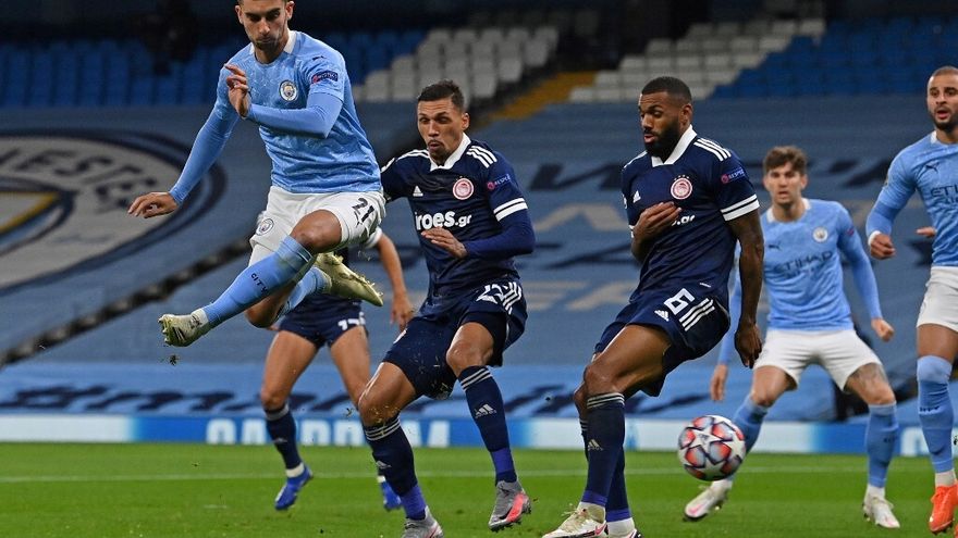 En una primera parte de dominio absoluto local (59% de posesión y 11 disparos a puerta por ninguno del Olympiakos), el City se adelantó en una buena triangulación ofensiva que acabó con la pared entre Ferran Torres y Kevin de Bruyne y el joven jugador español, que volvió a actuar como falso '9' superó a José Sa por bajo (12), entre las piernas del arquero griego.
