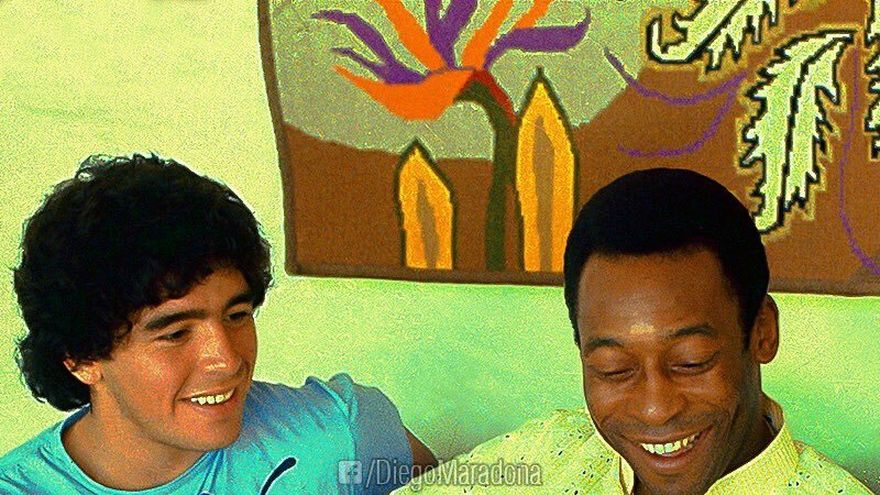 "Hoy esta foto cumplió 40 años. Fue en Río de Janeiro, cuando nos conocimos personalmente. Qué jóvenes que estábamos... Te deseo una muy pronta recuperación Rey @Pele, mucha fuerza!!!", dice Maradona en el post.