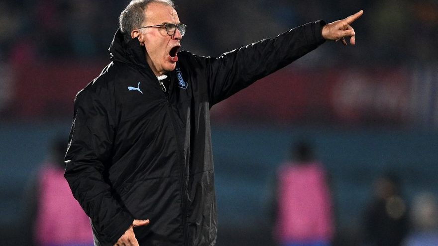 De tanto en tanto, Bielsa se aproximaba a la línea de demarcación, alentaba a alguno de sus futbolistas, se acuclillaba y regresaba, siempre muy serio, al banquillo.
