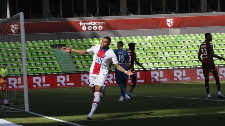El delantero francés Kylian Mbappé lideró a su París Saint-Germain a la victoria 3-1 en Metz (10º) con dos goles y permitió que el conjunto capitalino duerma este sábado, de manera provisional, como líder de la Ligue 1, en un partido de la 34ª jornada.