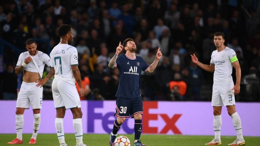 Lionel Messi marcó su primer gol con el París Saint-Germain con un disparo seco e imparable, este martes contra el Manchester City en la Liga de Campeones.