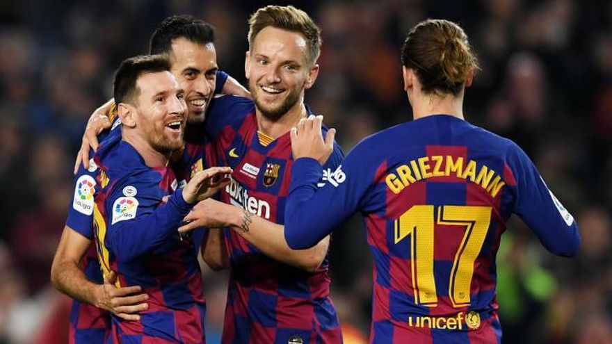Un festín en el Camp Nou. Messi celebró su sexto Balón de Oro, que brindó a la afición antes del partido, con un triplete, que le hace alcanzar los 12 goles en la presente Liga, además de haber conseguido cinco asistencias, lo que le sitúa al frente de ambas categorías.