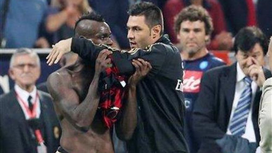 El Milan informó que no apelará la suspensión de tres partidos de su delantero Mario Balotelli. El club de la Serie A dijo el lunes que apelaría la sanción de Balotelli por insultar al árbitro, además de la decisión de cerrar una sección del estadio por un partido por conducta racista de sus hinchas. Sin embargo, tras recibir la explicación oficial sobre los castigos, el club indicó que sólo apelará el cierre de su Curva Sur., Balotelli, quien falló un penal y anotó un gol el domingo en la derrota 2-1 ante el Napoli, recibió una segunda amarilla después del silbatazo final por protestar ante el árbitro. El ariete italiano fue suspendido un encuentro por la expulsión, y al día siguiente se agregaron los otros dos partidos. Balotelli se perderá los partidos contra Bologna, Sampdoria y Juventus.