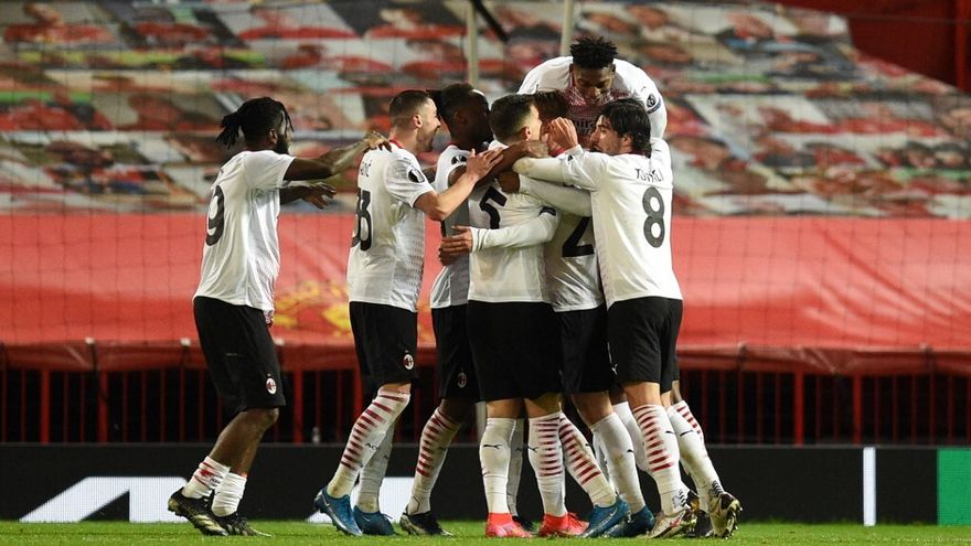 El Milan consiguió un valioso empate en el descuento final (1-1) en su visita al Manchester United, este jueves en el partido de ida de su eliminatoria de octavos de final de la Europa League.