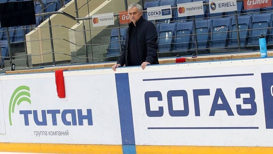 Mourinho fue invitado para hacer los honores al comienzo del partido entre el Avangard local y el SKA de San Petersburgo, que se disputó en un pabellón en la región de Moscú.
