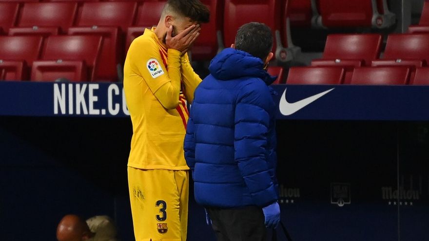 Piqué estaba al borde del llanto cuando abandonaba cojeando el terreno de juego durante la derrota del Barcelona por 1-0 ante el Atlético Madrid, en LaLiga española, el sábado tras un choque con el argentino Angel Correa.