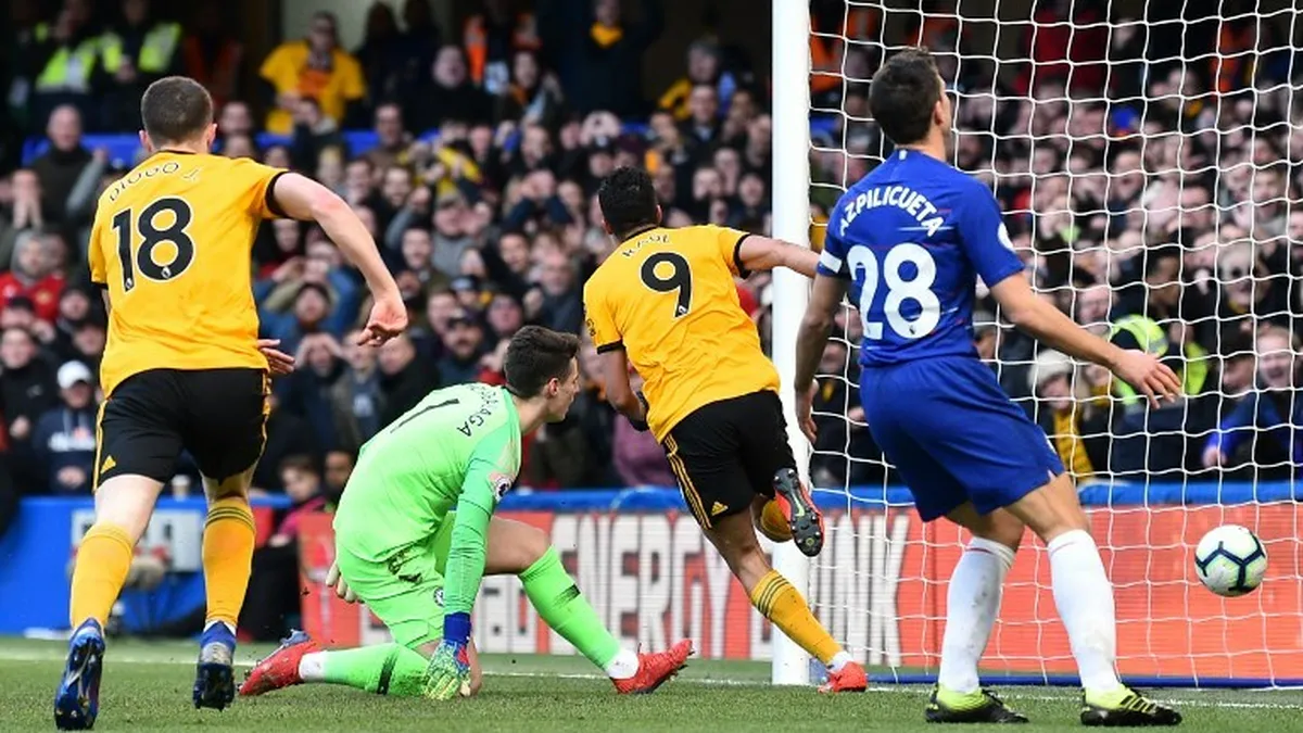 Grandes dominadores del partido (76% de la posesión, 22 lanzamientos), los 'Blues' se vieron sorprendidos por una excelsa contra culminada por Jiménez en el único disparo entre los tres palos de los 'Wolves'.