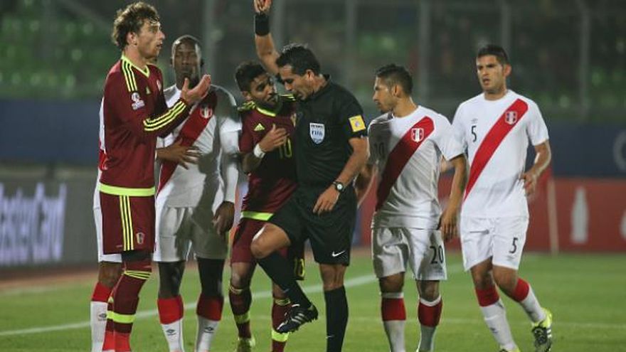 Fernando Amorebieta se fue expulsado a los treinta minutos del partido Perú-Venezuela, luego de un fuerte pisotón injustificado a Paolo Guerrero.
