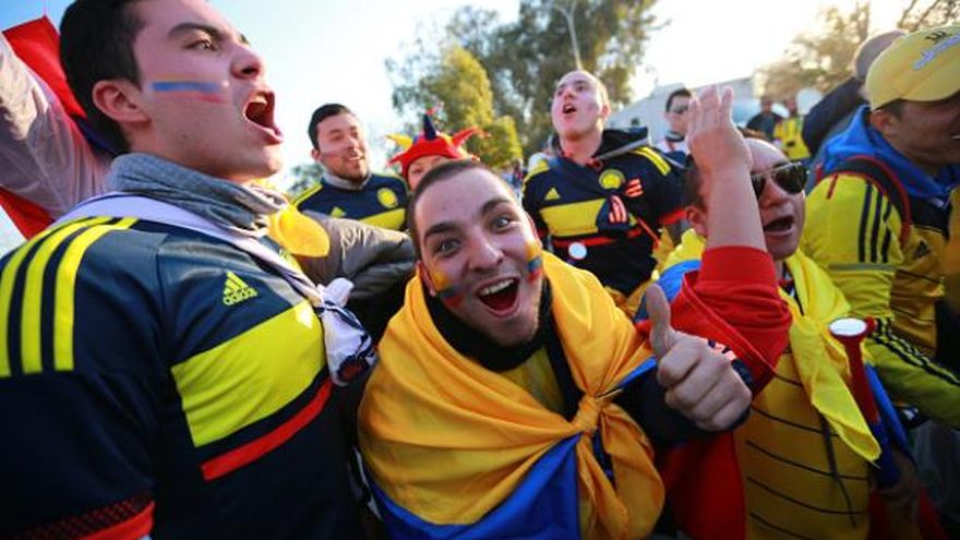 Colombia. Su ambiente es uno de los más lindos en el futbol. La alegría se contagia con sus ritmos y sus bailes. En el futbol, una de las canciones que más utilizan es el 'Canto a Colombia' de 'Ensamble' la cual va así: "Cantando cantando yo viviré, Colombia tierra querida Cantando, Cantando yo viviré Colombia tierra querida. Si si, Colombia. Si si, caribe Si si, Colombia. Si si, caribe. El caribe está encendido de aguardiente y café, olvida los preguisios y mueve bien los pie".