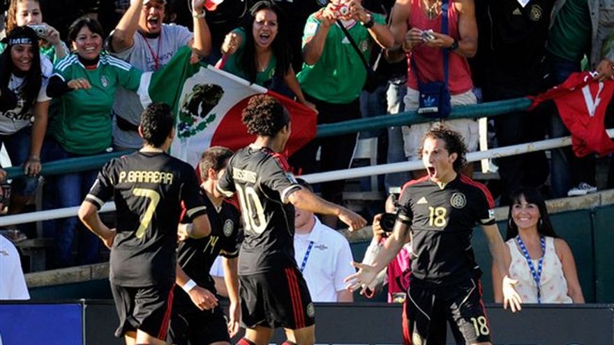 Con dos anotaciones de Pablo Barrera, otra de Andrés Guardado y un golazo de Giovani Dos Santos, México volteó el partido a Estados Unidos y se impuso el sábado por 4-2 en la final de la Copa de Oro de la CONCACAF. La mayoría de los 93.420 aficionados saltó de sus asiento al minuto 76, cuando Dos Santos hizo gatear al portero Tim Howard en el área y luego anotó, elevando espectacularmente el balón por encima de Eric Lichaj y en medio de otros cuatro defensas. Entonces, la selección dirigida por José Manuel de la Torre ya ganaba 3-2, luego de iniciar con dos goles en contra en los primeros 23 minutos. Estados Unidos abrió el marcador a los ocho minutos por medio de un cabezazo de Michael Bradley, hijo del entrenador de la escuadra estadounidense Bob Bradley. Bradley hijo peinó el balón y envió el balón contra las redes tras un tiro de esquina de Freddy Adu. La estrella del equipo de las barras y las estrellas aumentó la ventaja a los 23 minutos, cuando Landon Donovan remató en el área tras un pase de Clint Dempsey. México no bajó los brazos y descontó a los 29 minutos, cuando Javier "Chicharito" Hernández aprovechó una desconcentración de Estados Unidos y envió un pase a Pablo Barrera, quien venció a Howard con un remate. Guardado descontó a los 36 para empatar. Barrera marcó el 3-2 a los 50 minutos y Dos Santos puso la frutilla en el pastel a los 76.