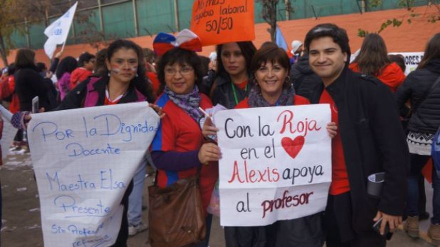 La docente portó un llamativo cartel que decía “Con La Roja en el corazón, Alexis apoya al profesor”. Respecto a ese mensaje, la maestra de lenguaje explicó que “estamos abogando a Alexis y a todos los jugadores para que nos apoyen, porque ellos también fueron alguna vez estudiantes y tuvieron profesores. Queremos tener una jubilación digna, que nos paguen como corresponden y que podamos estar con nuestras familias, porque por nuestro agobio laboral no podemos”.