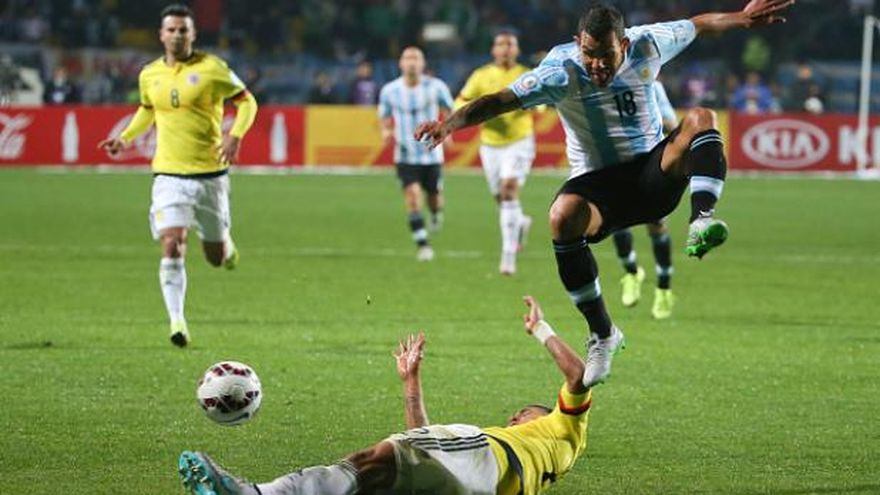 Tras igualar 0-0 en el tiempo reglamentario, Argentina y Colombia definieron a penales, siendo Tévez el héroe al marcar el último tiro, redimiéndose del penal que falló en la anterior Copa América que significó la eliminación ante Uruguay también en cuartos de final.