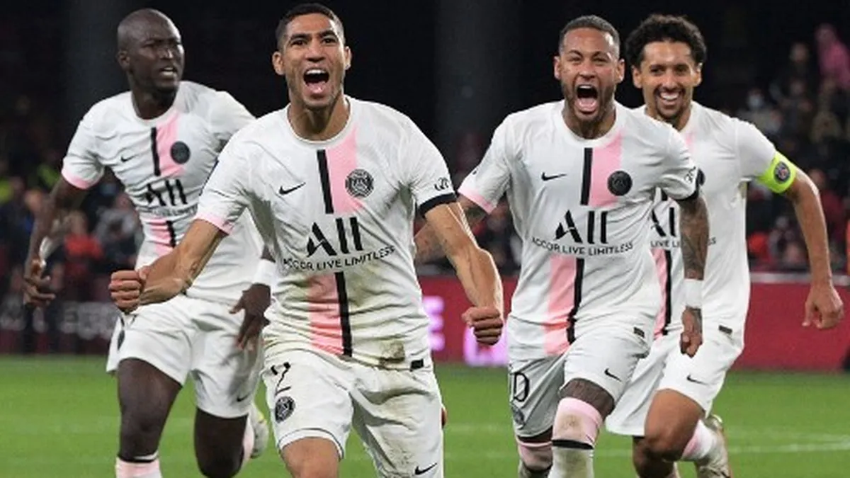 Un doblete del marroquí Achraf Hakimi (4, 90+4) dio una séptima victoria consecutiva en liga al PSG, pese a no poder contar por lesión con el astro argentino Leo Messi.