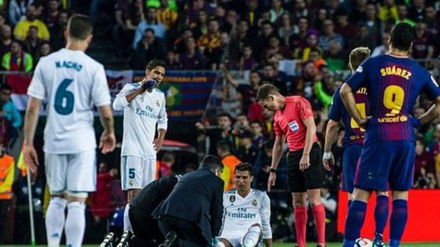 Cristiano Ronaldo sufrió este domingo en el clásico español, un golpe que lo obligó a salir del partido ante el Barcelona que terminó empatado 2-2.