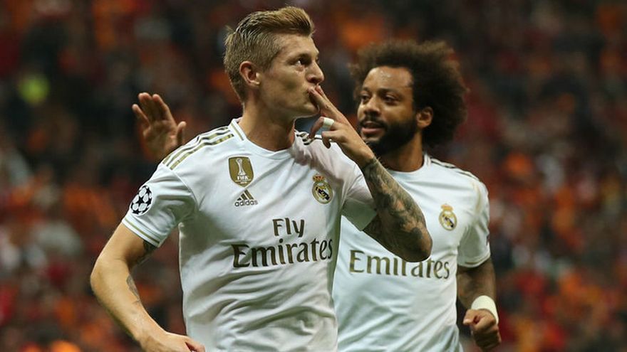 Una rápida triangulación en ataque entre el francés Karim Benzema y Eden Hazard, los dos únicos futbolistas blancos candidatos al Balón de Oro 2019, derivó en un pase atrás del ex jugador del Chelsea para Kroos, quien llegando desde atrás empalmó seco desde el corazón del área para superar al arquero uruguayo Fernando Muslera por la escuadra.