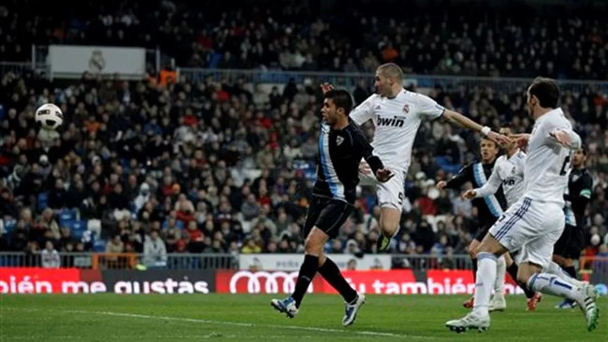El Real Madrid cumplió para mantener la distancia con el Barcelona en la liga española de fútbol y goleó el jueves 7-0 al Málaga con un triplete de Cristiano Ronaldo, otros dos de Karim Benzema y goles del argentino Angel Di María y el brasileño Marcelo. El Madrid finalizó el choque con diez hombres, ya que tras agotar los cambios y en vistas de que el Málaga jugaba con nueve, Cristiano abandonó el campo al lastimarse tras anotar su tercer gol, séptimo del encuentro. Los merengues sumaron su 21er partido invictos en casa y llegaron a 64 unidades, siete por detrás del líder Barcelona, que el miércoles venció 1-0 al Valencia. El Barsa logró un nuevo récord al sumar 20 jornadas invicto a domicilio. El francés Benzama fue el encargado de abrir el marcador a los 27 minutos al rematar con el exterior de la bota un lanzamiento de falta de Xabi Alonso. Los merengues dominaban el encuentro a pesar de que el Málaga les intentaba cortar en sus llegadas al área hasta que a los 36 el zaguero Manuel Gaspar dejó escapar a Marcelo, que lanzó un contraataque para asistir a Di María, quien cruzó un balón imparable para aumentar la ventaja. El argentino asisitió a Marcelo al filo del intermedio para transformar el tercero. Cristiano se reencontró con el gol después de cuatro partidos sin anotar, a los 51, tras recibir un pase en el área del alemán Mesut Oezil. Benzema convirtió el quinto a los 62 al rematar con la cabeza un centro de Marcelo. El equipo andaluz se quedó con diez al ver Gaspar la segunda amarilla cuando el árbitro indicó la pena máxima. Cristiano cobró un penal a los 68, engañando al arquero argentino Wilfredo Caballero y el balón terminó en la red. A los 77 Sergio Canales, a quien el técnico luso José Mourinho dio una oportunidad, le puso un centro desde la izquierda al portugués para que completara su triplete. Con ello, Cristiano igualó en 27 dianas al argentino Lionel Messi del Barsa, con quien mantiene su particular lucha por alzarse con el trofeo de máximo anotador del campeonato. "Ha sido un partido importante, hemos conseguido los tres puntos que era nuestro objetivo y hemos dado una alegría a la afición", comentó el brasileño Marcelo al finalizar el choque. El Valencia es tercero en la tabla con 51 puntos, seguido por el Villarreal con 50 puntos. El Málaga del chileno Manuel Pellegrini es penúltimo con 23 unidades. En otro encuentro del jueves, el Racing de Santander logró encadenar seis fechas invicto al igualar 1-1 con el Almería, que es colista con 22 unidades. Además, el Zaragoza venció 2-1 al Athletic de Bilbao; el Villarreal derrotó 1-0 al Hércules; el Getafe igualó 1-1 con el Atlético de Madrid; la Real Sociedad empató 1-1 con el Levante; Osasuna igualó sin goles con el Deportivo La Coruña; el Espanyol perdió 2-1 con el Mallorca, y el Sevilla venció 3-0 al Sporting de Gijón. Los cántabros suman siete triunfos, nueve empates y 10 derrotas esta campaña, para llegar a 30 unidades. El Racing jugó desde los 17 minutos con uno menos por la expulsión del zaguero brasileño Henrique que derribó al argentino Pablo Piatti, pero a pesar de la inferioridad numérica los cántabros se colocaron por delante en el marcador a los 37 con un tanto de Gonzalo Colsa. Antes del intermedio el Racing pudo aumentar la ventaja de penal, pero el arquero brasileño Diego Alves atajó el lanzamiento de Adrián González. En la reanudación, el Racing se resintió del esfuerzo físico al jugar en inferioridad y, a los 64, Albert Crusat envió el esférico al fondo de las mallas para igualar el partido. Kalu Uche pudo darle la vuelta al encuentro a poco del final, pero no estuvo acertado en sus remates.