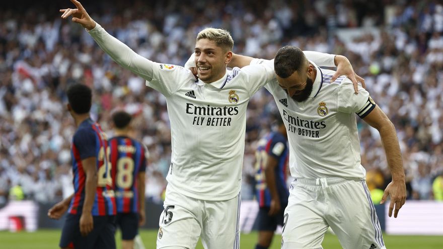 Los goles del Real Madrid fueron de Karim Benzema al minuto 12 y del uruguayo Federico Valverde al minuto 35.