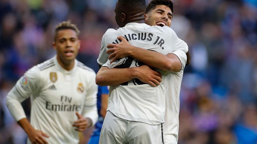 La aparición de Asensio antes del descanso rescató al Real Madrid del empate sin goles y, después, en la reanudación, Isco recogió el testigo de su compañero con una definición rotunda en los primeros compases de la segunda parte: su disparo desde fuera del área que entró por la escuadra derecha de la portería de Pedro Luis, fue incontestable.