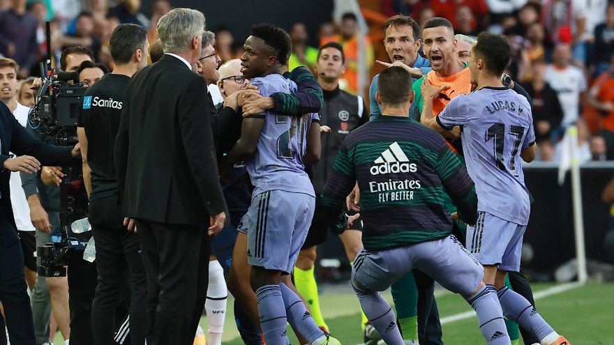 "He hablado con él durante el partido, el ambiente era muy caliente, muy malo, le he pedido si quería continuar jugando. Ya el hecho de pensar que tengo que quitarlo porque el ambiente es racista, no me parece bien. Yo tengo que quitar a un jugador si no juega bien, pero para pensar de quitar un jugador para racismo, nunca me ha pasado. Lo que ha pasado hoy ha pasado otras veces, pero así no. Es inaceptable. LaLiga española tiene un problema. Que no es Vinicius. Vinicius es la víctima. Hay un problema muy grave", destacó el entrenador del Real Madrid, una vez finalizado el partido.