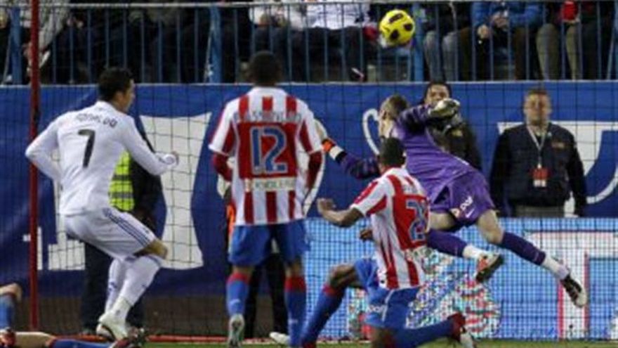 El Real Madrid estiró su paternidad sobre el Atlético de Madrid al ganarle el jueves 1-0 para avanzar a las semifinales de la Copa del Rey por primera vez desde 2006. El único gol llegó a los 23 minutos por cuenta de Cristiano Ronaldo, su número 32 en la temporada. El portugués prendió un centro de Sergio Ramos en el estadio Vicente Calderón del Atlético. La victoria del Madrid selló un marcador global 4-1 en la serie, luego de haber ganado 3-1 el partido de ida la semana pasada. También extendió a 20 partidos su racha sin perder contra su clásico rival de la capital española. La racha se remonta a 1999. El Madrid, que en semifinales se topará con el campeón vigente Sevilla, ha ganado 17 veces el torneo de copa, pero la última consagración fue en 1993. Barcelona, que con 25 títulos es el equipo más laureado en la historia de la copa, se las verá con el Almería en la otra llave. Ambas series comenzarán la próxima semana. El Atlético necesitaba ganar 2-0 para voltear el marcador, pero el equipo dirigido por Quique Sánchez Flores sintió la baja por lesión del delantero argentino Sergio Agüero. Tampoco ayudó que el también atacante José Antonio Reyes se lesionó en el primer tiempo. Menos apremiado, los merengues supieron regular el partido y neutralizar a un Atlético que fue más ímpetu. Los de José Mourinho marcaron su gol en una excelente jugada colectiva que de paso esfumó cualquier idea de remontada que tenía el Atlético. La acción del gol fue gestada por Xabi Alonso, quien pasó a Ramos y éste cedió a Cristiano. Mourinho alineó sin un centrodelantero, al dejar en el banquillo al francés Karim Benzemá.