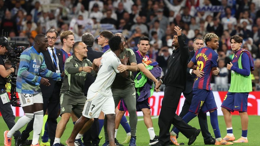 Pero si el marcador puso distancia en la tabla, el pitazo final eliminó toda diplomacia. Inmediatamente después del triunfo, varios jugadores del Madrid se dirigieron directamente hacia la joven promesa culé, Lamine Yamal. La escena fue captada por todas las cámaras y puso de manifiesto el malestar que el canterano había generado.