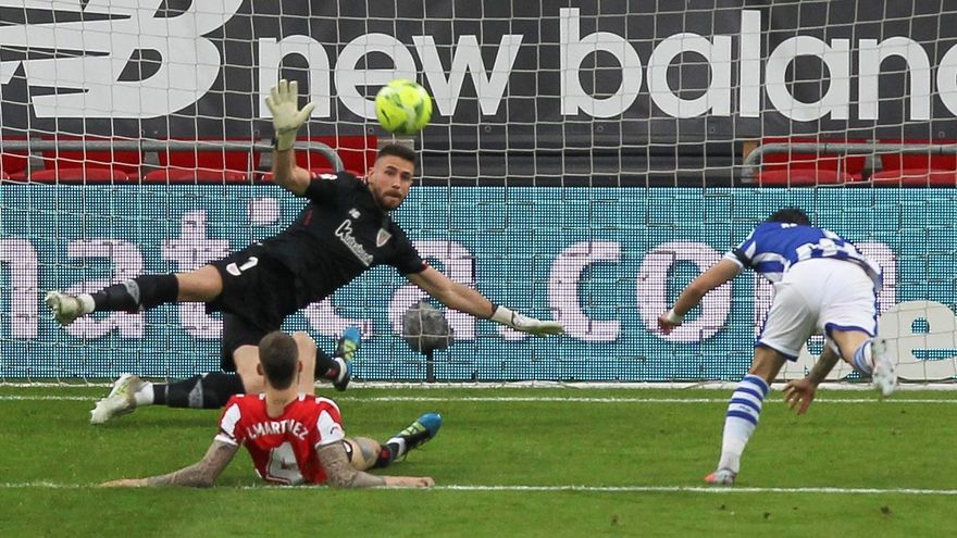 El conjunto local, falto de ambición y de ideas, apenas inquietó al meta realista, y antiguo canterano del club bilbaíno, Alex Remiro.