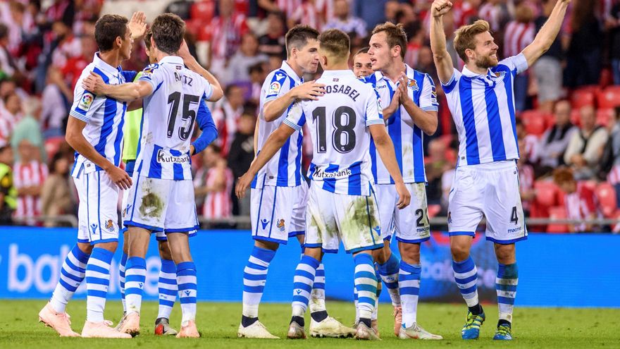 El internacional español Mikel Oyarzabal, pretendido por el Athletic en el último 'mercato' de fichajes, abrió el marcador al convertir un penal, tras consulta al VAR, cometido por el exjugador de la Real Sociedad Iñigo Martínez (30).